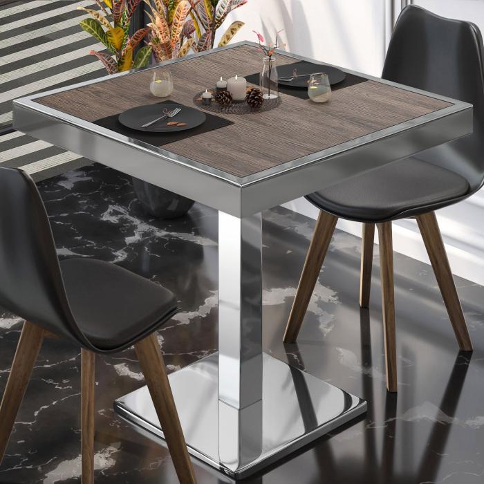 BM | Table de bistrot | L:P:H 50 x 50 x 77 cm | Wengé clair / acier inoxydable | Carré